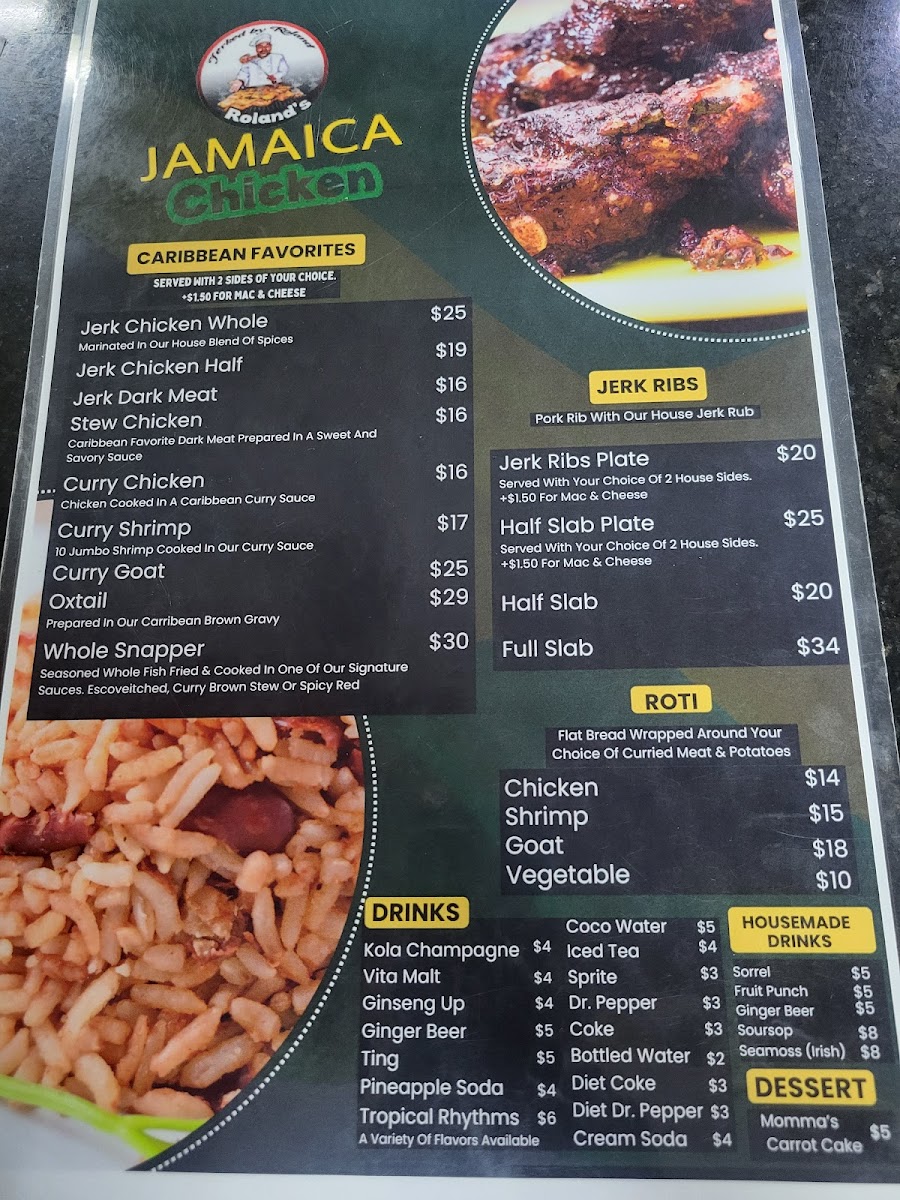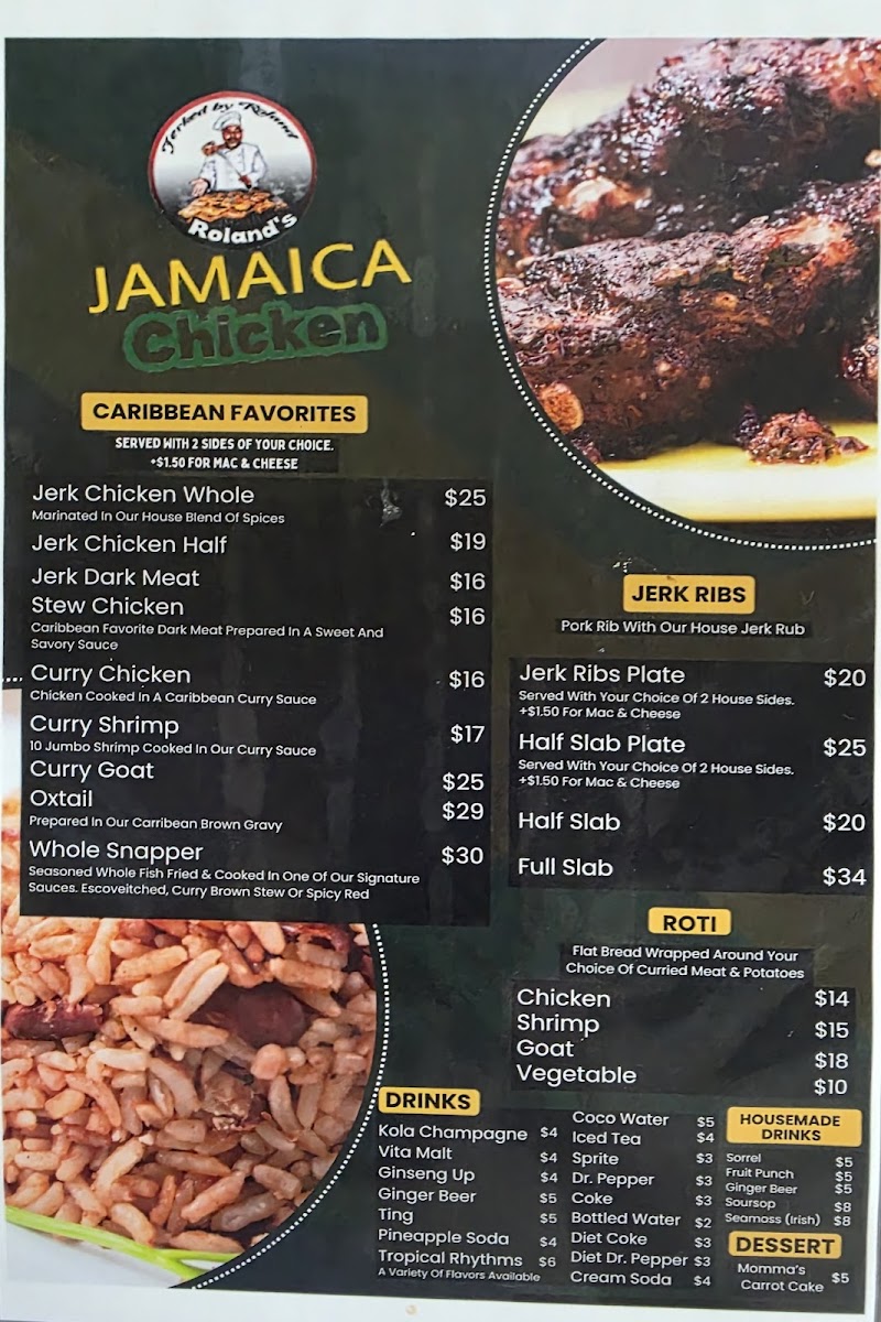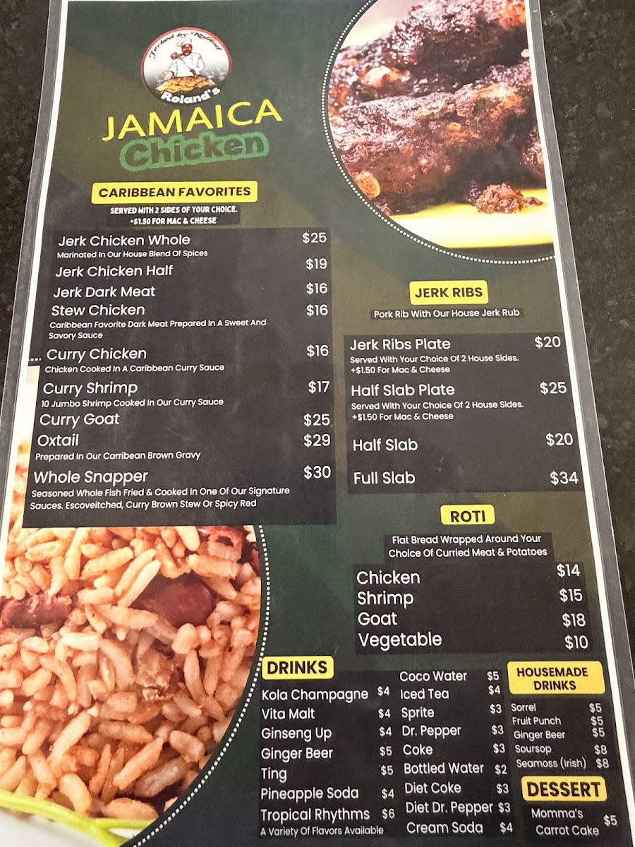 “ Food and service are incredible! I’ve had Roland’s twice for take out and the food has been consistently great. Large portions and the flavors are delicious! This was my first time dining in and it was an amazing experience. We had the ribs, jerk chicken, plantains, collard greens, rice and peas, and Mac and cheese. Jamaican music was playing. It was all perfect. Dontae was our server and he was excellent. He was very attentive and friendly, always made sure we were taken care of. I highly recommend this place! ”
